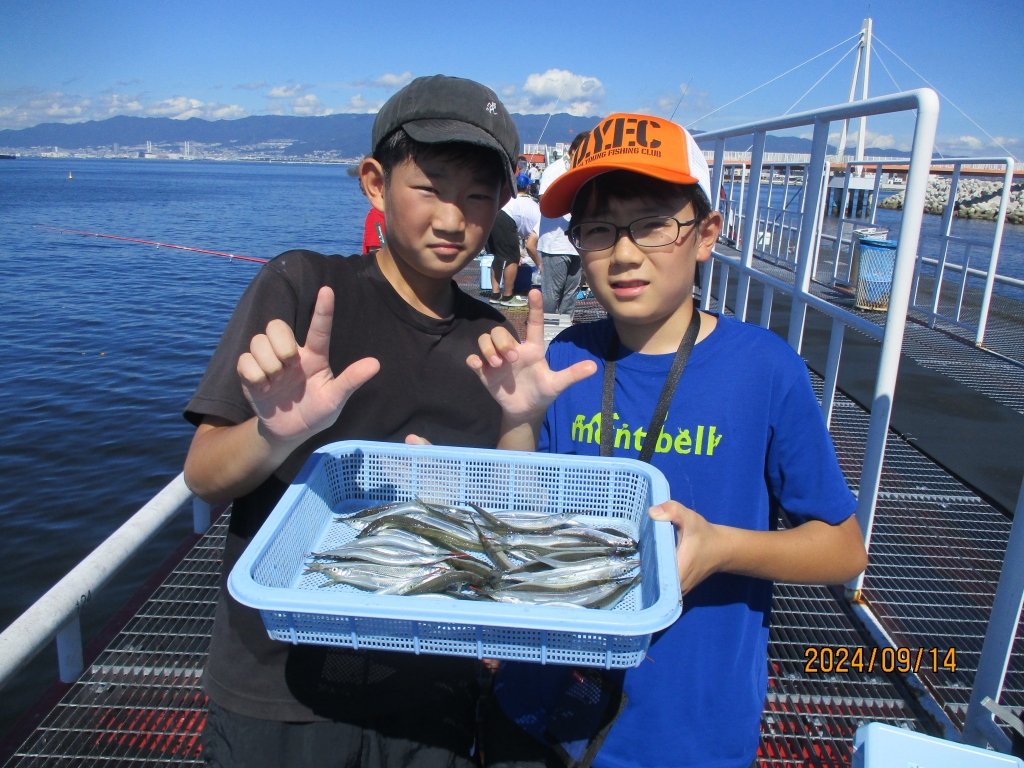 今日は大阪市のつばさ君とそうすけ君が16〜20cmのサヨリを45匹釣られました。
