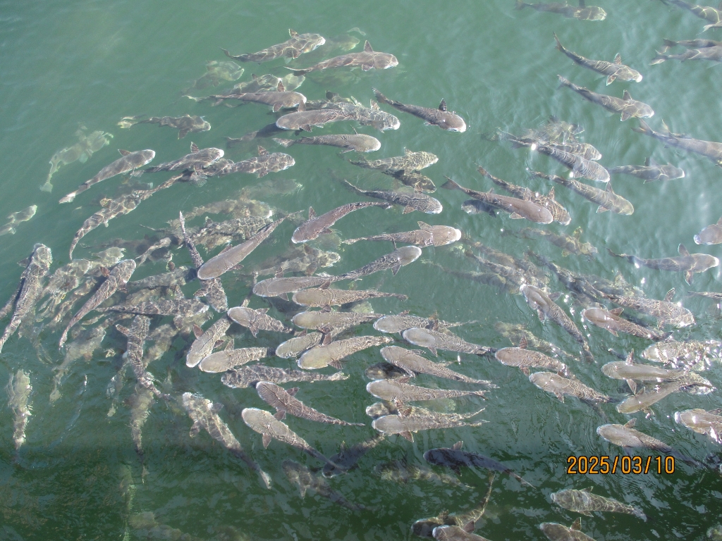 今日はスケスケの潮で大量のボラが水中を縦横無尽に