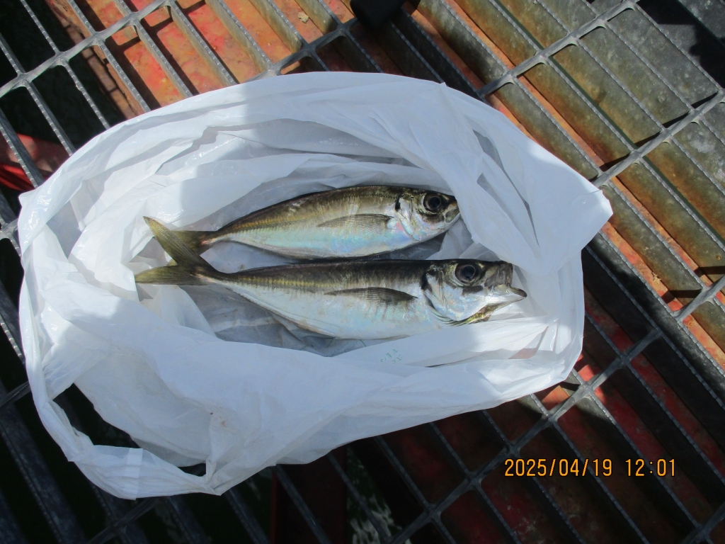 朝の9時頃にサビキ釣りでアジが2匹釣れましたが
