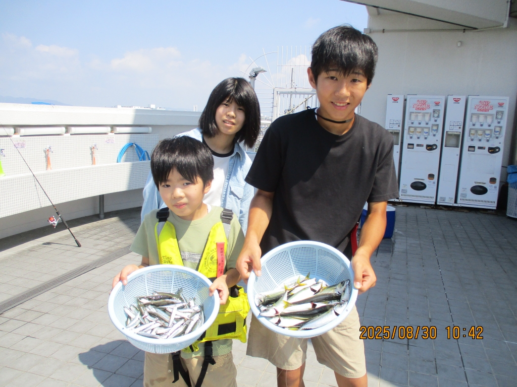高槻市のちくわちゃんご一家、サヨリ70匹以上釣れました👏