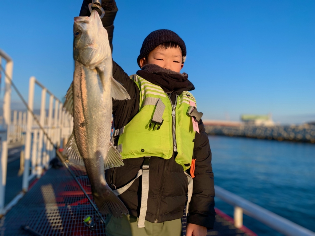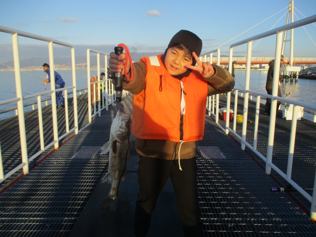 生駒市の晃佑くん、初めて釣れたハネは45cmおめでとう👍