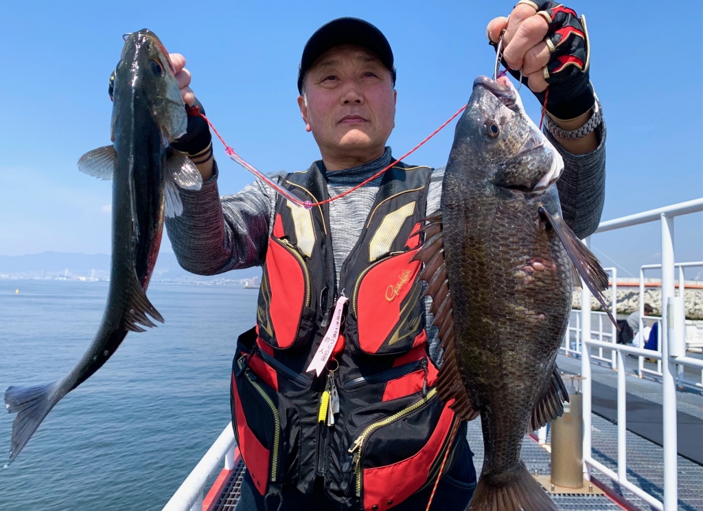 尼崎市よりお越しの塩野様 ハネとチヌ46、5cm! チヌは月間大物賞にノミネートです!