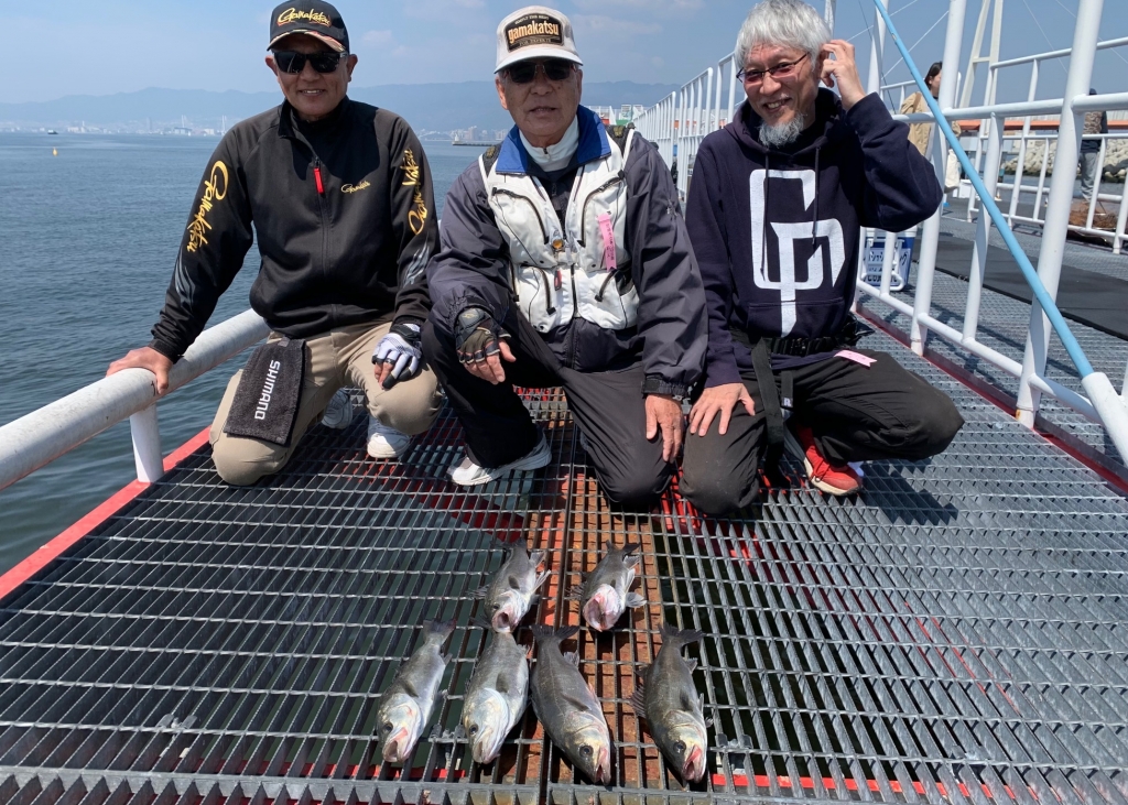 今日は尼崎市の塩野様がチヌ46.5cmとハネ41cmを1匹ずつ釣られました。