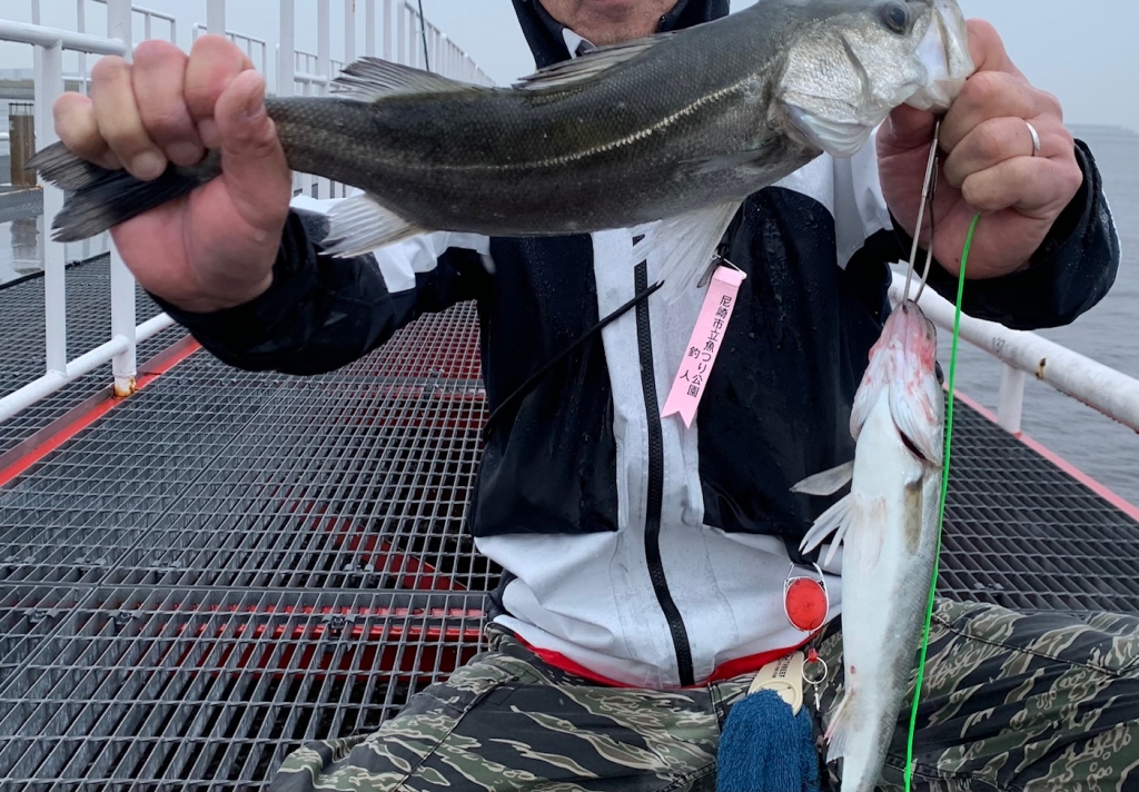10時ごろに釣り場東側内向きでセイゴ30cmが上がりました。タナは4ヒロでした。