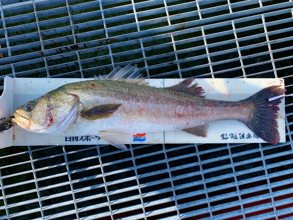 スズキの部は活アジのノマセ釣りで